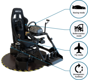 RacingCUBE-simulatoren er udstyret med "force feedback", så du mærker motor-vibrationerne i sædet. Du mærker endda alle ujævnheder og sving fra racerbanen i sædet og rattet. Samme forhold gælder for flying-simulatoren